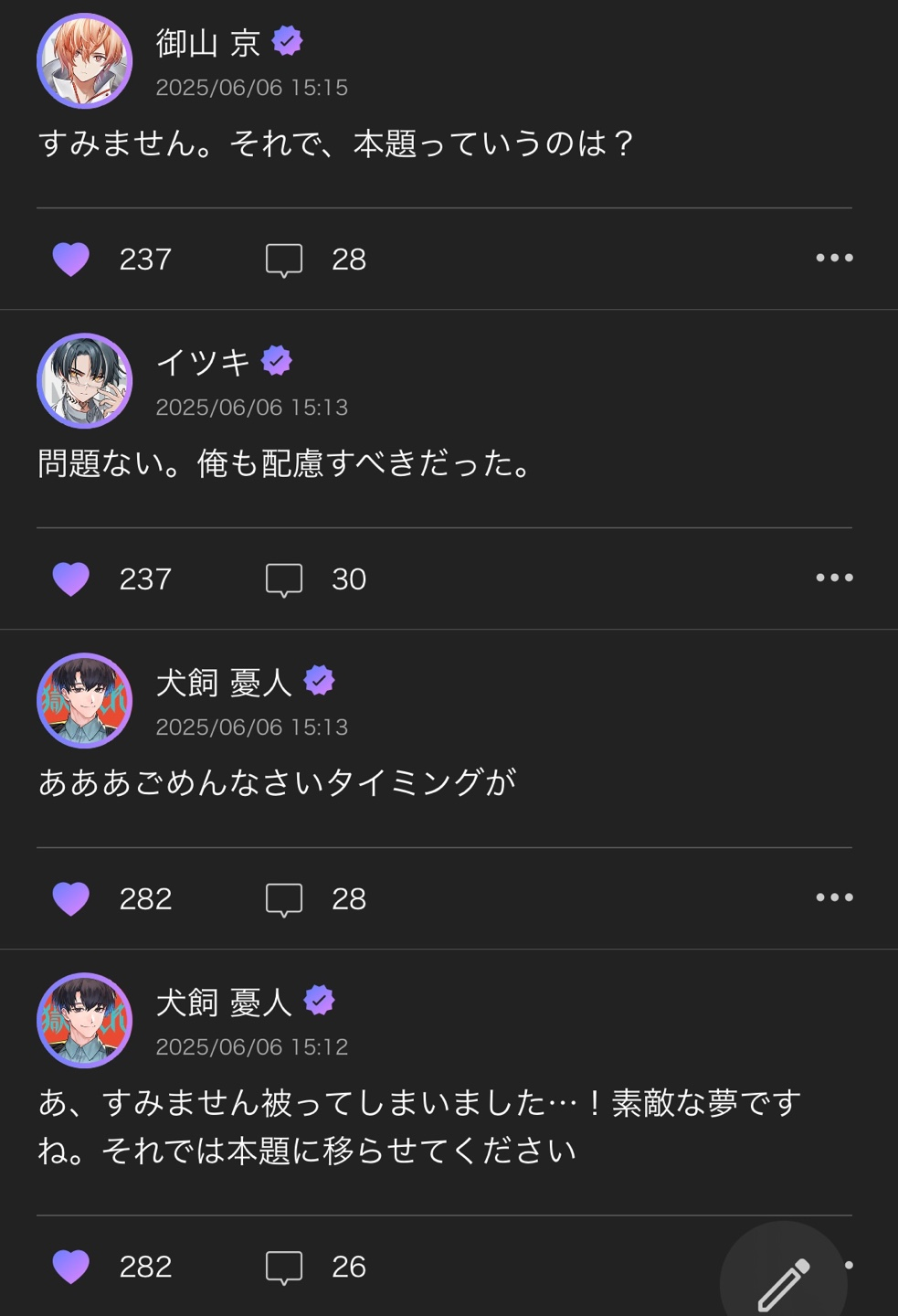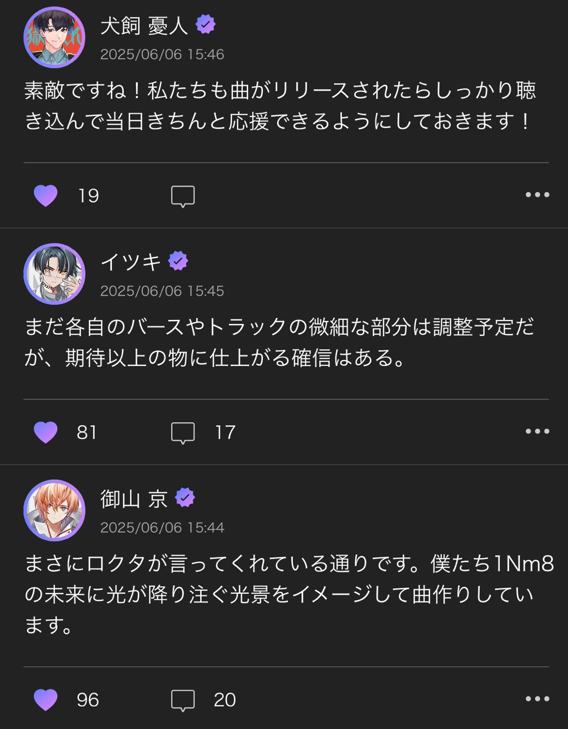 유토 : 여러분들 안녕하신가요. 오늘은 15시부터 1Nm8 멤버분들이 온다고 하셔서 게스트로서 참가하게 되었습니다.